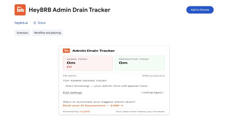 The HeyBRB Admin Drain Tracker turns time lost to admin into a weekly pound figure - built on findings from the company's 2026 UK Admin Drain ReportLONDON - HeyBRB [https://heybrb.ai/], the AI automation consultancy for UK small business owners, today launched the HeyBRB Admin Drain Tracker: a free Chrome extension that runs silently in the background and tells letting agents, accountants, and tradespeople exactly how much admin is eating their week - not in vague percentages, but in pounds.