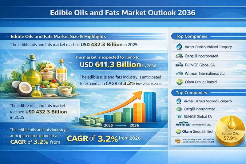 Global Edible Oils and Fats Market Outlook 2036: Rising Processed Food Consumpti …