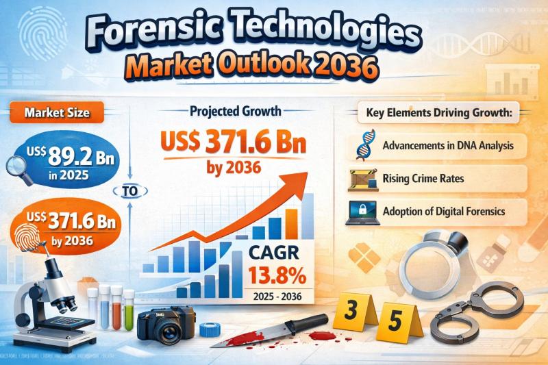 The global forensic technologies market is witnessing remarkable expansion, reflecting the growing reliance on scientific evidence in modern criminal justice systems. Valued at US$ 89.2 billion in 2025, the market is projected to reach US$ 371.6 billion by 2036, advancing at a robust compound annual growth rate (CAGR) of 13.8% during the forecast period from 2025 to 2036.