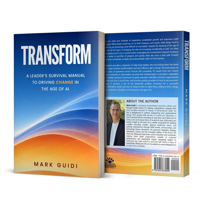 In Transform, Guidi shows leaders how to structure transformation more effectively, avoid common organizational pitfalls, and execute with a framework that is both repeatable and flexible. The book also explores the leadership qualities required to guide change successfully, helping readers lead with confidence, discipline, and humanity during times of uncertainty.