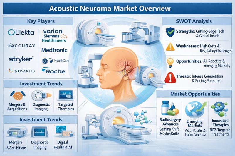 The acoustic neuroma market is a highly specialized segment within neuro-oncology and neurosurgical care, focused on the diagnosis and treatment of vestibular schwannomas-benign tumors affecting the vestibulocochlear nerve. The market is shaped by advancements in minimally invasive surgery, stereotactic radiosurgery, imaging technologies, and targeted therapeutics. As patient awareness and diagnostic capabilities improve, competition among medical device companies, pharmaceutical firms, and healthcare providers continues to intensify.