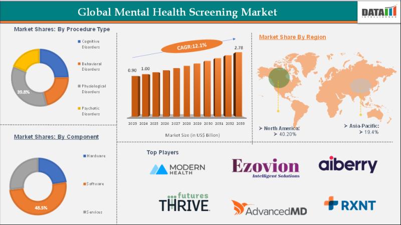 Mental Health Screening Market to Reach USD 2.78 Billion by 2033 at 12.1% CAGR; North America Leads with 40% Share - Key Players: IBM Corporation, Headspace Health, Teladoc Health, Oracle Health, Google Health