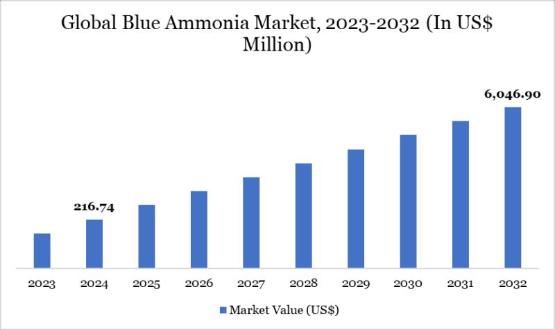 The Global Blue Ammonia Market reached US$ 216.74 million in 2024 and is expected to reach US$ 6,255 million by 2032, growing at a remarkable CAGR of 51.60% during the forecast period 2025-2032.
