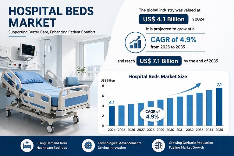 The hospital beds market plays a vital role in the global healthcare infrastructure, providing essential support for patient care across hospitals, clinics, nursing homes, and home healthcare settings. Hospital beds are specially designed to offer comfort, safety, and ease of treatment for patients while enabling healthcare professionals to deliver efficient care. These beds come equipped with features such as adjustable height, electronic controls, side rails, and pressure relief systems, making them indispensable in modern medical environments.The global hospital beds market was valued at approximately USD 4.1 billion in 2024 and is expected to reach around USD 7.1 billion by 2035, growing at a CAGR of about 4.9% during the forecast period. The market growth is driven by increasing hospital admissions, expanding healthcare facilities, and rising demand for advanced patient care solutions.