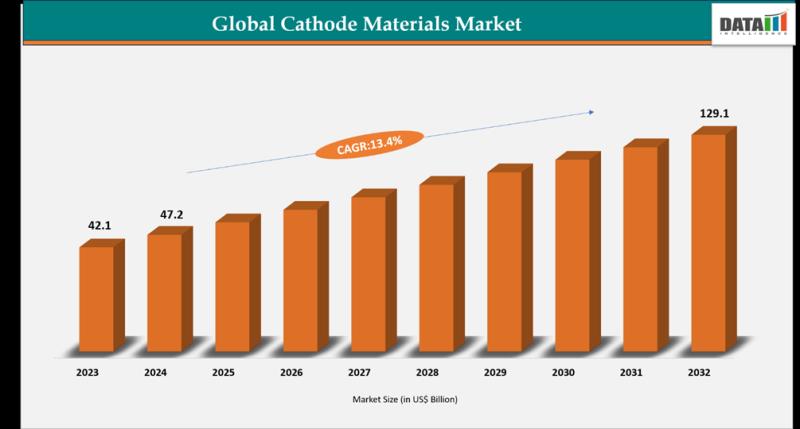 Cathode Materials Market reached US$ 47.2 billion in 2024 and is expected to reach US$ 129.1 billion by 2032, growing with a CAGR of 13.4% during the forecast period 2026-2033.