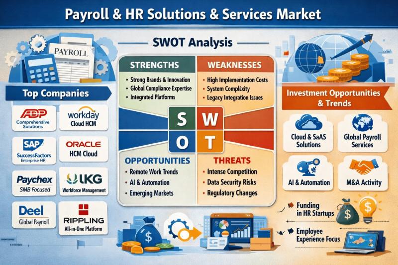 The Payroll and HR Solutions & Services Market is undergoing rapid transformation as organizations prioritize automation, compliance, and employee experience. Businesses are shifting from traditional, manual HR systems to integrated, cloud-based platforms that combine payroll, talent management, benefits administration, and workforce analytics. This transition is being driven by global workforce expansion, regulatory complexity, and the demand for real-time data insights.