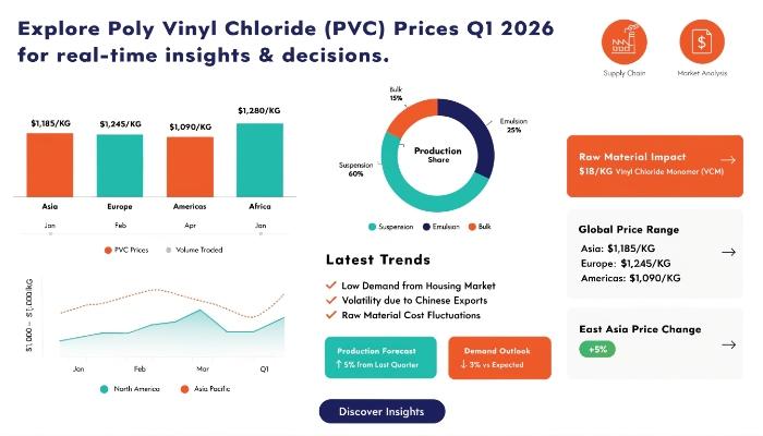 These figures highlight significant regional variation in Poly Vinyl Chloride Prices, driven by differences in energy costs, production efficiency, trade flows, and downstream demand conditions across global markets in Q1 2026.