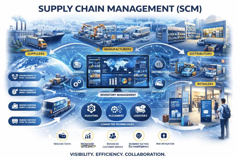 The global supply chain management (SCM) market reached USD 34.38 billion in 2025 and is expected to reach USD 71.65 billion by 2032, growing at a CAGR of 13.45% from 2026 to 2033. The market is witnessing strong growth driven by the increasing need for efficient logistics, real-time visibility, and optimized supply chain operations across industries.
