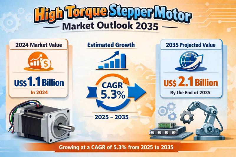 The global high torque stepper motor market, valued at US$ 1.1 billion in 2024, is projected to reach US$ 2.1 billion by 2035, expanding at a steady compound annual growth rate (CAGR) of 5.3% during the forecast period from 2025 to 2035. This growth trajectory reflects the increasing reliance on precision-driven technologies across a wide array of industries, including healthcare, manufacturing, robotics, and aerospace.Preview crucial insights and findings from our Report in this sample -