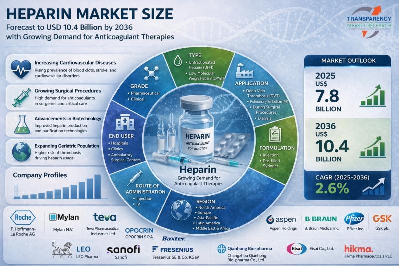 Heparin Market Size Forecast to USD 10.4 Billion by 2036 with Growing Demand for Anticoagulant Therapies - Analysis by Transparency Market Research