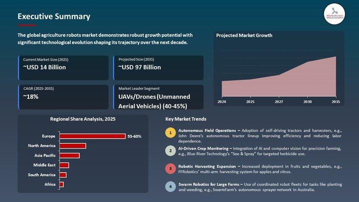 Agriculture Robots Market to Reach USD 97.5 Billion by 2035 | CAGR 18.7% Driven by Precision Farming and Autonomous Technologies