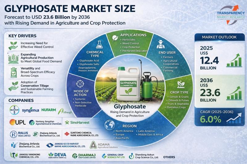 Glyphosate Market Size Forecast to USD 23.6 Billion by 2036 with Rising Demand i …