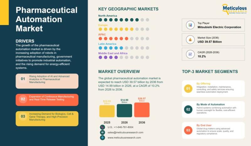 The global pharmaceutical automation market was valued at USD 13.53 billion in 2025 and is projected to experience substantial growth over the coming decade. It is expected to reach approximately USD 39.57 billion by 2036, rising from USD 14.99 billion in 2026, at a compound annual growth rate of 10.2% during the forecast period from 2026 to 2036. This strong expansion reflects the increasing reliance of the pharmaceutical industry on…