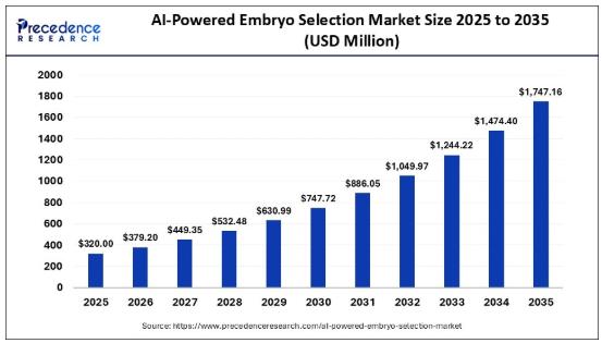 According to Precedence Research, the global AI-powered embryo selection market size was valued at USD 320.00 million in 2025 and is projected to reach around USD 1.74 billion by 2035, expanding at a robust CAGR of 18.50% from 2026 to 2035.