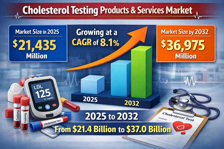 The Cholesterol Testing Products and Services Market is experiencing steady expansion, driven by the growing emphasis on preventive healthcare and the rising burden of cardiovascular and metabolic disorders. The global market size was estimated at USD 21,435 million in 2025 and is projected to reach USD 36,975 million by 2032, growing at a CAGR of 8.1% from 2025 to 2032. This growth trajectory reflects the increasing integration of lipid…