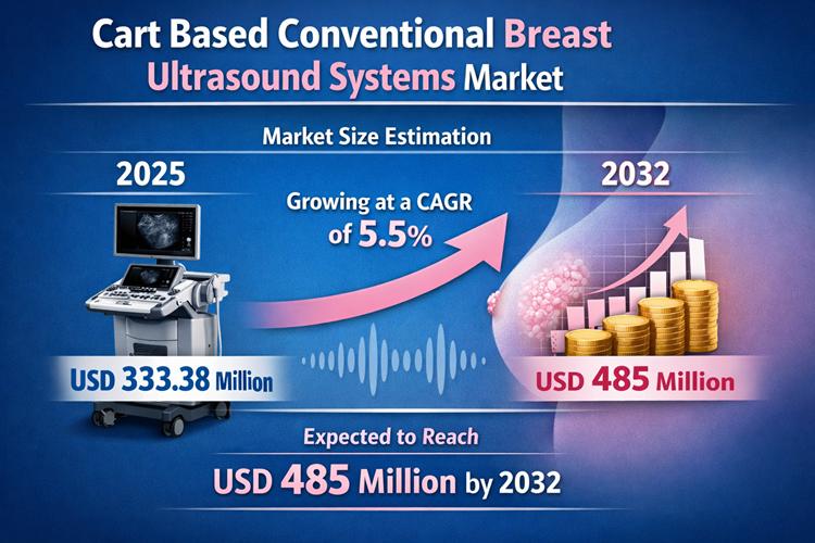 The global Cart Based Conventional Breast Ultrasound Systems Market was valued at USD 333.38 million in 2025 and is projected to reach USD 485 million by 2032, expanding at a CAGR of 5.5% from 2025 to 2032. The market continues to evolve as healthcare providers increasingly rely on ultrasound as a first-line, radiation-free diagnostic modality for breast imaging. Its ability to deliver real-time visualization, differentiate between cystic and solid…