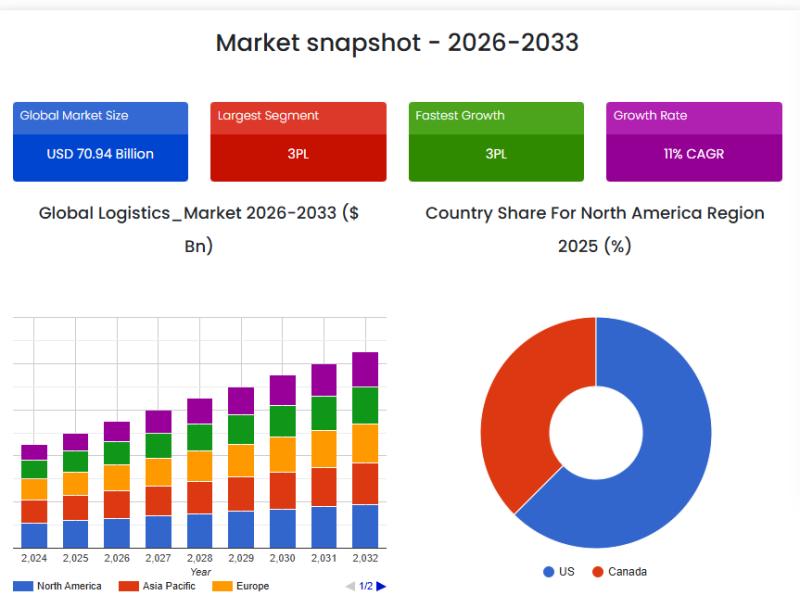 The logistics industry is undergoing a massive transformation as global trade, e-commerce, and supply chain digitization reshape how goods are transported and delivered worldwide. Global demand for logistics services is accelerating significantly due to increasing cross-border trade and rising consumer expectations for faster delivery. According to the latest market intelligence report by SkyQuest Technology, the Global Logistics Market size was valued at USD 288.45 Billion in 2024 and is poised to grow from USD 321.62 Billion in 2025 to USD 768.33 Billion by 2033, growing at a CAGR of 11.5% during the forecast period (2026-2033). This strong growth trajectory reflects the critical role logistics plays in enabling global commerce and economic development.Get a Free Sample Report - https://www.skyquestt.com/sample-request/logistics-market