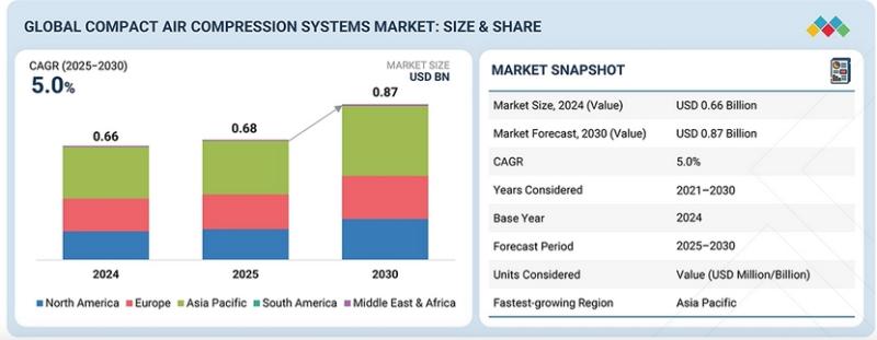 The global compact air compression systems market is projected to reach USD 0.87 billion in 2030 from USD 0.68 billion in 2025, at a CAGR of 5.0%.
