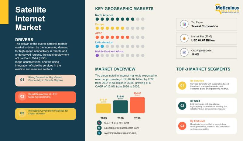 Satellite Internet Market to Reach USD 64.67 Billion by 2036 at 16% CAGR