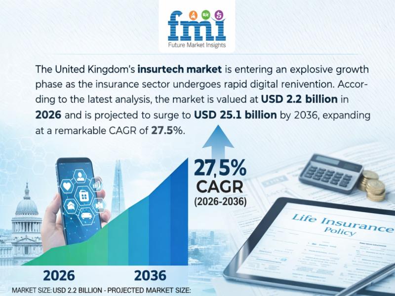 The United Kingdom's insurtech market is entering an explosive growth phase as the insurance sector undergoes rapid digital reinvention. According to the latest analysis, the market is valued at USD 2.2 billion in 2026 and is projected to surge to USD 25.1 billion by 2036, expanding at a remarkable CAGR of 27.5%.