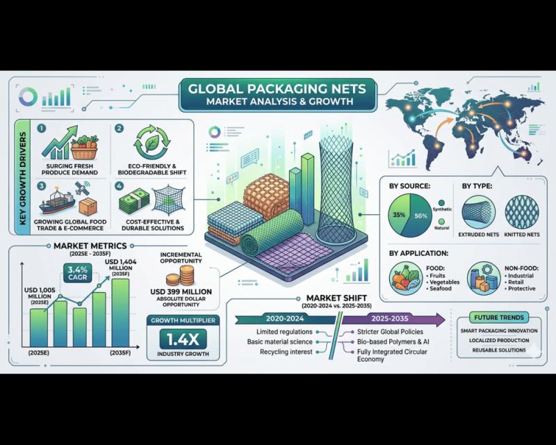 The global Packaging Nets Market is undergoing a high-velocity transformation, evolving from a traditional agricultural commodity into a sophisticated, tech-driven packaging segment. According to the latest industry analysis by Fact.MR, the market is projected to reach a valuation of USD 1,404 million by 2035, growing at a steady CAGR of 3.4% from its 2024 baseline of USD 975 million.