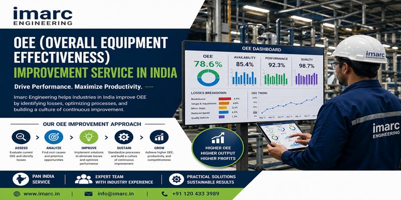 OEE (Overall Equipment Effectiveness) Improvement Service by IMARC Engineering in India enables organizations to enhance equipment productivity, reduce downtime, and achieve higher manufacturing efficiency through structured performance optimization. The service focuses on identifying losses, improving asset utilization, and implementing data-driven strategies to maximize production output across industrial operations.