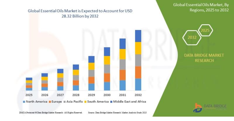 As per Data Bridge Market Research analysis, the Essential Oils Market was estimated at USD 18.30 billion in 2025. The market is expected to grow from USD 19.49 billion in 2026 to USD 28.32 billion in 2032, at a CAGR of 6.5% during the forecast period with driven by the rising demand for natural products.