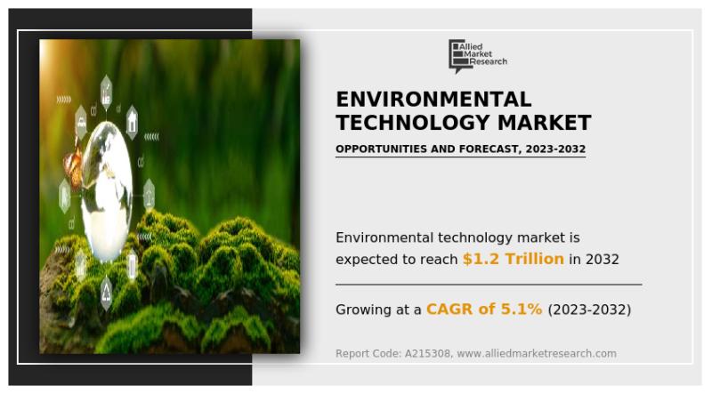 According to a new report published by Allied Market Research, the environmental technology market size was valued at $0.7 trillion in 2022 and is projected to reach $1.2 trillion by 2032, growing at a CAGR of 5.1% from 2023 to 2032. The rapid shift toward sustainability, strict environmental regulations, and increasing awareness about climate change are major factors driving the expansion of the environmental technology market globally.