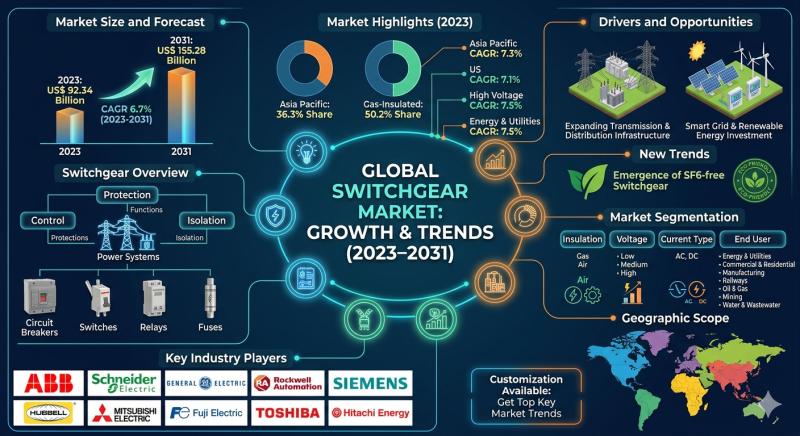 According to a new market study by The Insight Partners, the global switchgear market is experiencing strong and sustained growth due to rising electricity demand, expanding power infrastructure, and increasing adoption of smart grid and renewable energy technologies. The report estimates that the market will grow from US$ 92.34 billion in 2023 to US$ 155.28 billion by 2031, registering a compound annual growth rate (CAGR) of 6.7% during the forecast…
