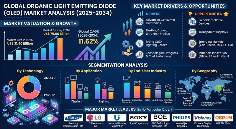 According to a new industry analysis published by The Insight Partners, the global Organic Light Emitting Diode (OLED) market is set for significant expansion, fueled by rapid innovation in display technologies, increasing use of flexible and foldable screens, and growing demand from consumer electronics and automotive industries. The report estimates that the OLED market, valued at approximately US$ 31.40 billion in 2025, is projected to reach US$ 75.66 billion by…