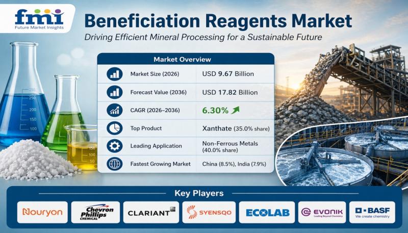 The global beneficiation reagents market is witnessing steady growth, driven by rising demand for mineral processing chemicals across copper, lithium, rare earths, and iron ore applications.