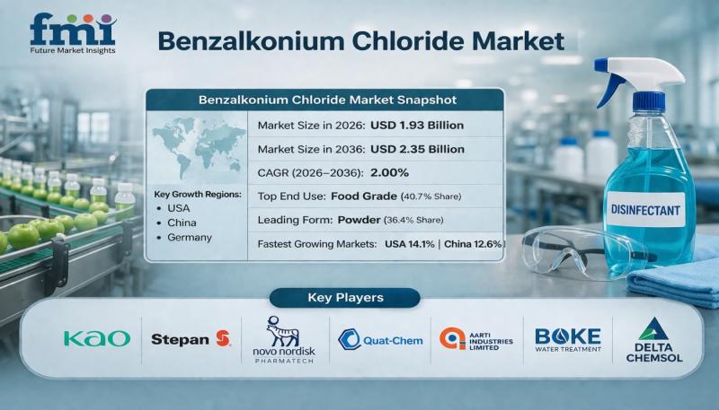 Benzalkonium Chloride Market Growth by 2036 Led by USA, China with Kao, Stepan D …