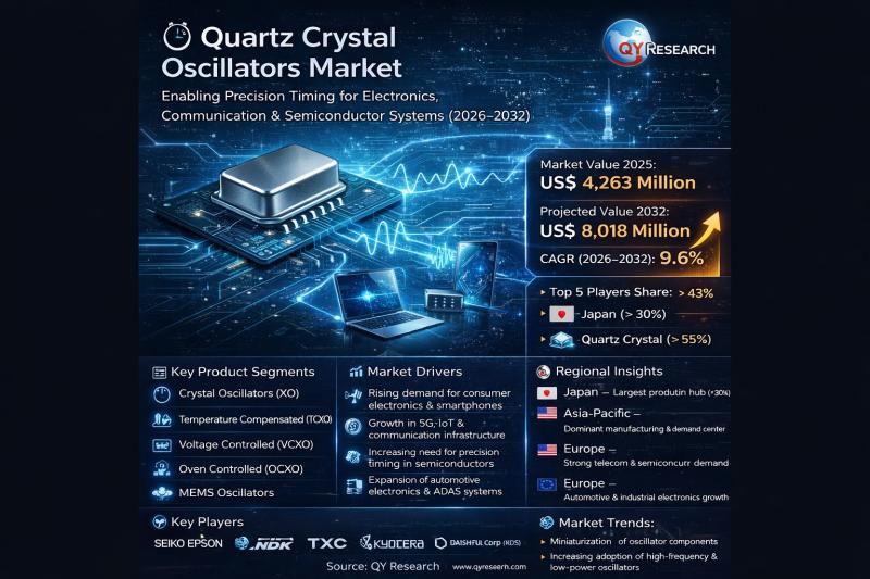 According to a newly published report by QY Research, the global Quartz Crystal Oscillators Market 2026 delivers a comprehensive and data-driven analysis designed to enhance business decision-making and unlock high-growth opportunities across industries.