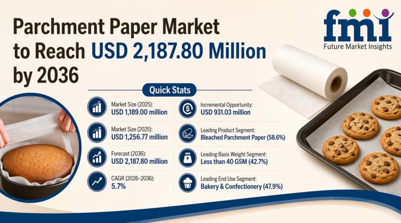 Parchment Paper Market to Reach USD 2,187.80 Million by 2036, Driven by Bakery E …