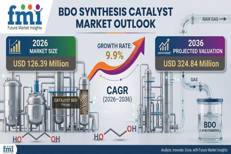 According to the latest analysis by Future Market Insights (FMI), the global shift toward high-efficiency chemical manufacturing is accelerating demand for advanced catalyst systems, positioning BDO synthesis catalysts as a critical enabler of industrial process optimization. The global BDO synthesis catalyst market is projected to grow from USD 126.39 million in 2026 to USD 324.84 million by 2036.