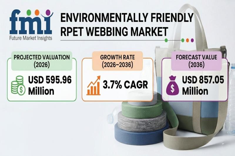 According to the latest analysis by Future Market Insights (FMI), the global shift toward circular economy practices is accelerating demand for environmentally friendly RPET webbing, transforming it from a niche sustainable alternative into a mainstream industrial material. The market is projected to grow from USD 595.96 million in 2026 to USD 857.05 million by 2036.