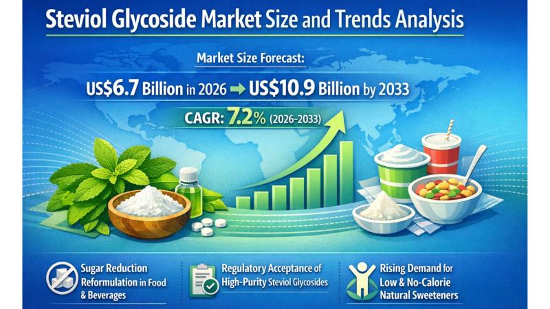 According to the latest study by Persistence Market Research, the global steviol glycoside market is projected to be valued at US$6.7 billion in 2026 and is expected to reach US$10.9 billion by 2033, expanding at a CAGR of 7.2% during the forecast period. This strong growth trajectory is fueled by sustained sugar-reduction reformulation across food and beverage categories, increasing regulatory acceptance of high-purity steviol glycosides, and rising consumer demand for…