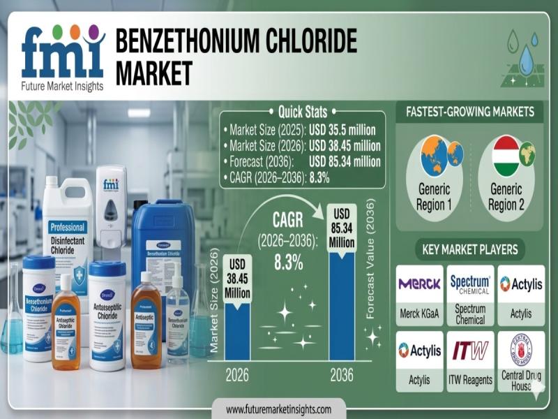 Benzethonium Chloride Market to Reach USD 85.34 Million by 2036, Driven by Antim …