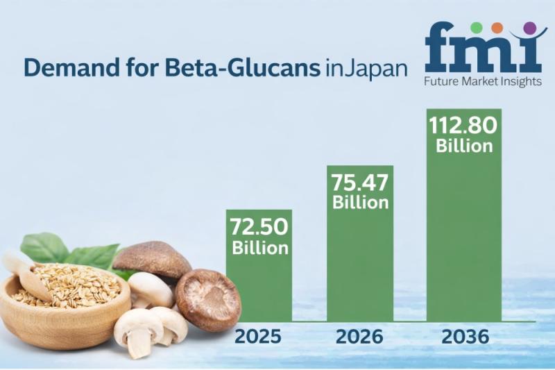 Demand for beta-glucans in Japan is experiencing steady growth as consumers increasingly prioritize health, immunity, and preventive nutrition. According to the latest analysis, the market is valued at USD 75.47 billion in 2026 and is projected to reach USD 112.80 billion by 2036, expanding at a CAGR of 4.1%. The sector is expected to generate an incremental opportunity of USD 37.33 billion over the forecast period.This growth reflects a shift toward functional food ingredients, where bioactive compounds such as beta-glucans are gaining traction across dietary supplements, functional foods, and personal care applications. Regulatory frameworks such as Japan's Foods with Function Claims (FFC) system are further enabling product innovation and market expansion.