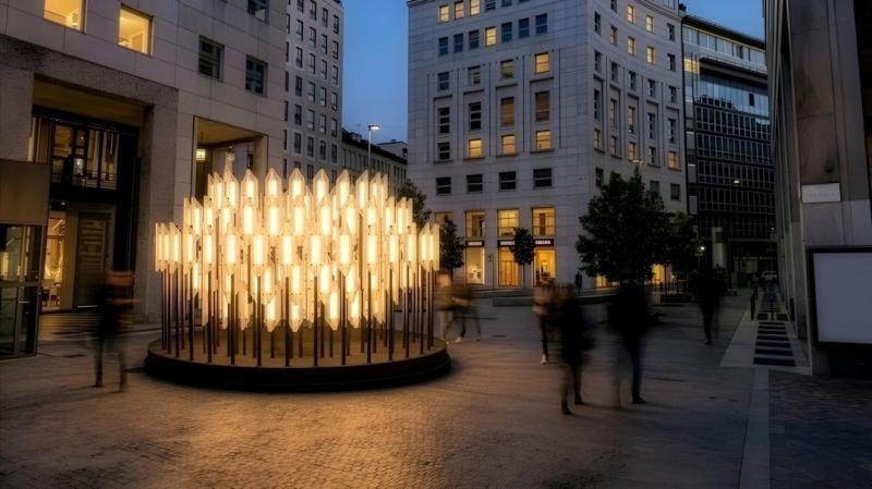 The sustainability extends beyond material sourcing. BEACON has been designed for disassembly and reuse - after its appearance at Salone del Mobile, components can be repurposed into individual light fixtures rather than being discarded. This circular design approach ensures longevity beyond the installation's temporary appearances.