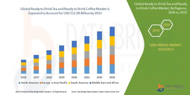 As per Data Bridge Market Research analysis, the Ready-to-Drink (RTD) Tea and RTD Coffee Market was estimated at USD 125.90 billion in 2025. The market is expected to grow from USD 134.35 billion in 2026 to USD 211.69 billion in 2033, at a CAGR of 6.71% during the forecast period with driven by the rising demand for convenient beverages, increasing health-conscious consumer preferences, and continuous product innovation across functional and…
