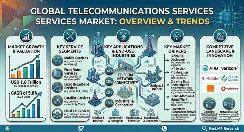 The global Telecommunications Services Market is entering a transformative era of hyper-connectivity, valued at USD 2,251.2 billion in 2025. According to the latest sector analysis, the industry is pivoting from legacy voice services toward a "Connectivity-as-a-Service" model, driven by 5G-Advanced deployment, nationwide fiber rollouts, and a surge in private enterprise networks.