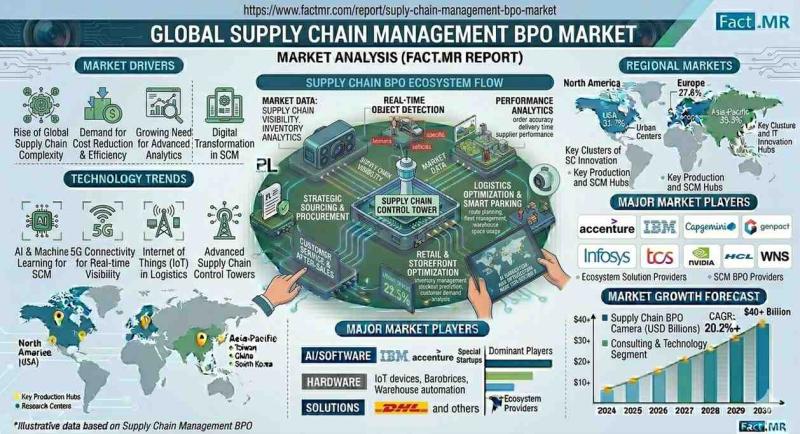 The global Supply Chain Management (SCM) BPO market is undergoing a fundamental structural shift, moving from a simple cost-saving exercise to a high-stakes strategic necessity. According to a comprehensive new industry study by Fact.MR, the market-valued at USD 81.3 billion in 2025-is set for a decade of aggressive expansion as enterprises prioritize AI-driven forecasting and regulatory compliance.The report highlights that the traditional "offshore-only" model is being challenged by a massive surge in nearshoring, with contract values in North America alone growing by 22% year-over-year as companies seek regional agility and data sovereignty.