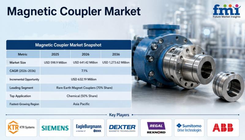 Demand for magnetic couplers is witnessing steady global growth, driven by increasing adoption across chemical, pharmaceutical, and food processing industries where leak-free and contamination-free operations are critical.