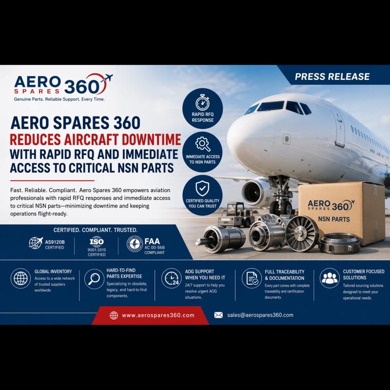 Aero Spares 360, a leading distributor of aerospace and defense components, is transforming the way aviation professionals approach parts procurement by offering rapid RFQ responses and immediate access to critical NSN parts. Designed to support time-sensitive operations, the platform addresses one of the industry's most pressing challenges-aircraft downtime caused by delayed or inefficient sourcing.Aircraft on Ground (AOG) situations rarely come with warning. A single missing component can halt operations, disrupt schedules, and lead to significant financial consequences. In these moments, procurement teams are under immense pressure to locate certified parts quickly while ensuring compliance with strict aviation standards. Aero Spares 360 steps into this gap with a solution built around speed, reliability, and traceability.