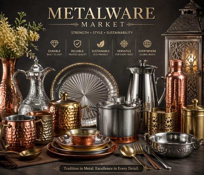 The Metalware Market refers to the global industry involved in the production, distribution, and sale of goods made primarily from metals such as steel, aluminum, copper, brass, and iron. These products range from household items (cookware, utensils, and decorative goods) to industrial and commercial components (tools, hardware, fittings, and structural items).