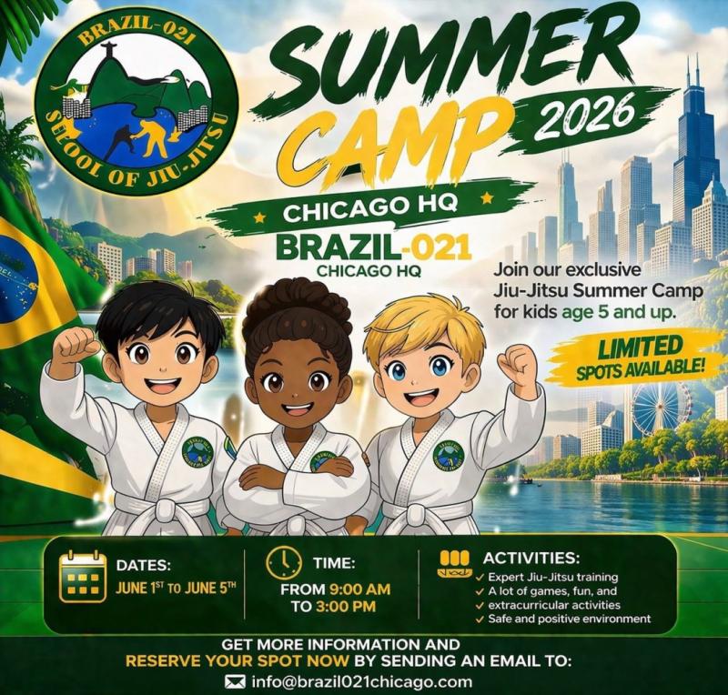 Brazil-021 School of Jiu-Jitsu at Chicago HQ is thrilled to announce its 2026 Kids BJJ Summer Camp, an exciting week-long Brazilian Jiu-Jitsu program for children ages 5 and up. Running June 1-5, 2026 from 9:00 AM to 3:00 PM, the camp offers expert training, fun activities, and a safe, positive environment. Spots are limited!