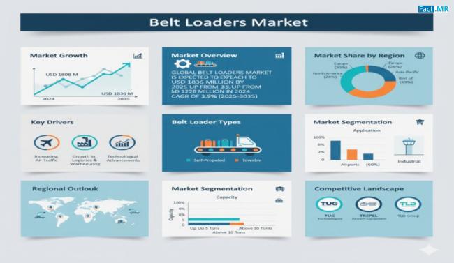 The global aviation ground support equipment industry is undergoing a significant modernization phase as airports and ground handlers prioritize operational efficiency and carbon neutrality. According to the latest comprehensive industry analysis by Fact.MR, the global Belt Loaders Market is projected to grow from US$ 1,208 million in 2024 to a valuation of US$ 1,836 million by 2035.Get detailed market forecasts, competitive benchmarking, and pricing trends: https://www.factmr.com/connectus/sample?flag=S&rep_id=1603