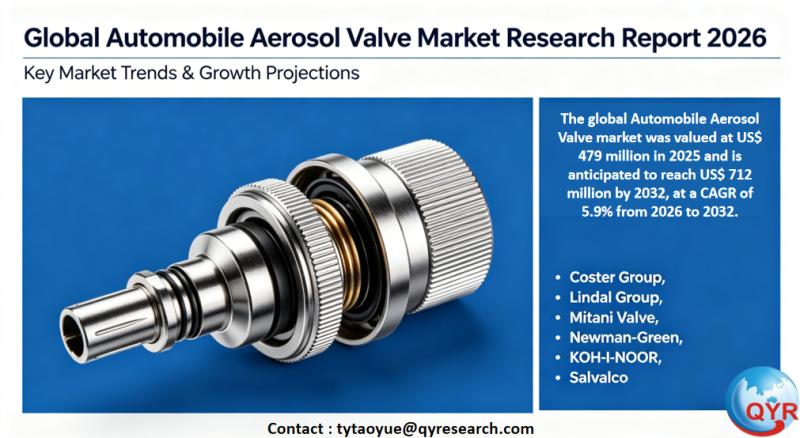 The global Automobile Aerosol Valve market was valued at US$ 479 million in 2025 and is anticipated to reach US$ 712 million by 2032, at a CAGR of 5.9% from 2026 to 2032.