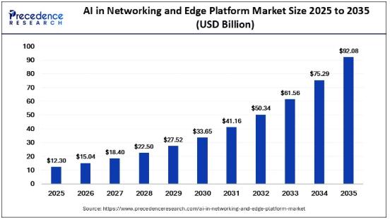 According to Precedence Research, the global AI in networking and edge platform market size will rise from USD 12.30 billion in 2025 to approximately USD 92.08 billion by 2035, expanding at an impressive CAGR of 22.30% from 2026 to 2035. This rapid growth is primarily driven by the increasing demand for real-time decision-making, proliferation of IoT ecosystems, and the need for enhanced data privacy with reduced latency.